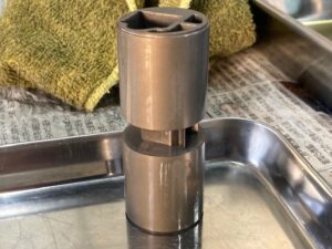 オイルがでてくるのでトレーの上で作業します