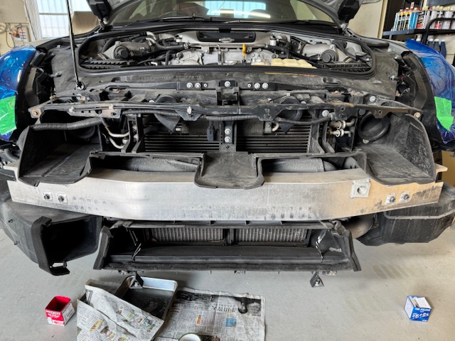 GTR に関する記事 R35 GT-R 2025年12月27日 admin R35 N様 ラジエターとファンモーターの交換です。 最近、GT-Rのメンテも やはり年式相応で メジャーな部品劣化が多いですね~ またまた時間がかかる作業なので この場所で作業です。 ラジエターに到達するまでに ディフューザー バンパー レインフォース インタークーラー脱して ようやくラジエターへたどり着きます。 そして 取り外した純正ラジエター 電動ファン ファンモーター モジュレーターも交換です 装着完了! ついでに ホースとタンクも交換 作業完了です ありがとうございました。